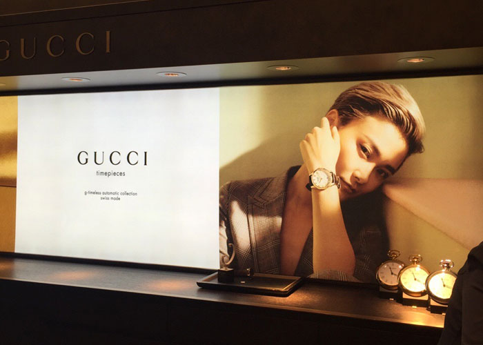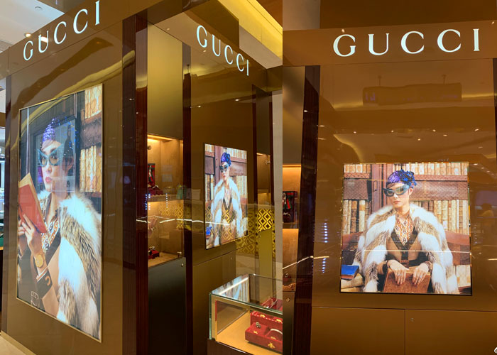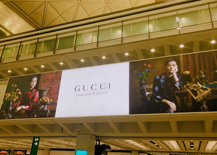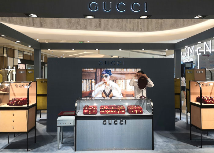 GUCCI品牌時裝一向以高檔、豪華、性感而聞名于世,以“身份與財富之象征”品牌形象成為富有上流社會的消費寵兒,一向被商界人士垂青,時尚又不失高雅。古馳現在是意大利時裝集團。古馳--永恒而經典并深受明星們的青睞,品牌靈感源自演員,公主和名媛等杰出女性。如今其創(chuàng)作總監(jiān):弗里達·賈娜妮(Frida Giannini),將這一歷史悠久的品牌推向了全新的高度。其產品包括:經典鞋履,奢華手袋,珠寶手表等。下面就跟著我們四川零貳捌成都店面門頭招牌設計公司一起來欣賞全球奢侈品品牌之一古馳的店面門頭招牌設計: