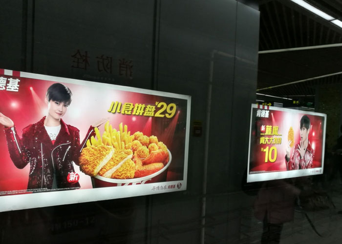 (1)內容趨向以商業(yè)性為主,兼顧公益性和地方特色 地鐵廣告內容以商業(yè)為主,時效性較強,在企業(yè)推出新產品或季節(jié)更替、突發(fā)重大事件時,企業(yè)就會更換廣告主題和表現(xiàn)手法,且時換時新。地鐵是公共產所,必須肩負受眾的信息需求,擔負起一定的社會責任,因而公益廣告的公益信息內容發(fā)布也是地鐵廣告的重要組成部分。在某種程度上,地鐵廣告還結合公益性和商業(yè)性表現(xiàn)出隱形廣告的特點。