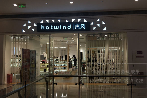 成都hotwind熱風(fēng)實體店門頭招牌制作安裝首選四川零貳捌廣告公司,可提供店鋪門頭裝修設(shè)計一對一服務(wù),根據(jù)其產(chǎn)品特色個性化定制門頭招牌發(fā)光字。店面門頭設(shè)計的要點是創(chuàng)意、有個性且能吸引眼球??梢圆捎弥卑椎姆绞綇恼信聘咚兕櫩湍闶琴u什么的,也可以用隱晦的手法讓顧客從招牌中看不出明堂,反而想進(jìn)店一探究竟。