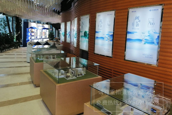 首先,模型區(qū)一般設(shè)置在進(jìn)門的區(qū)域,容易帶給客戶深刻的第一印象。模型區(qū)是通過小區(qū)總體模型來展示小區(qū)的總體規(guī)劃,形象地說明小區(qū)的總體風(fēng)格、小區(qū)景觀、規(guī)劃棟數(shù)等小區(qū)技術(shù)經(jīng)濟(jì)指標(biāo),以及小區(qū)所在地區(qū)的交通等大環(huán)境。另外還可以有單體模型來表達(dá)單體的立面風(fēng)格、色彩等,或利用剖面模型來展示房型內(nèi)部格局等。在模型區(qū)還可適當(dāng)?shù)夭贾靡恍粝浜涂窗?作為其輔助。