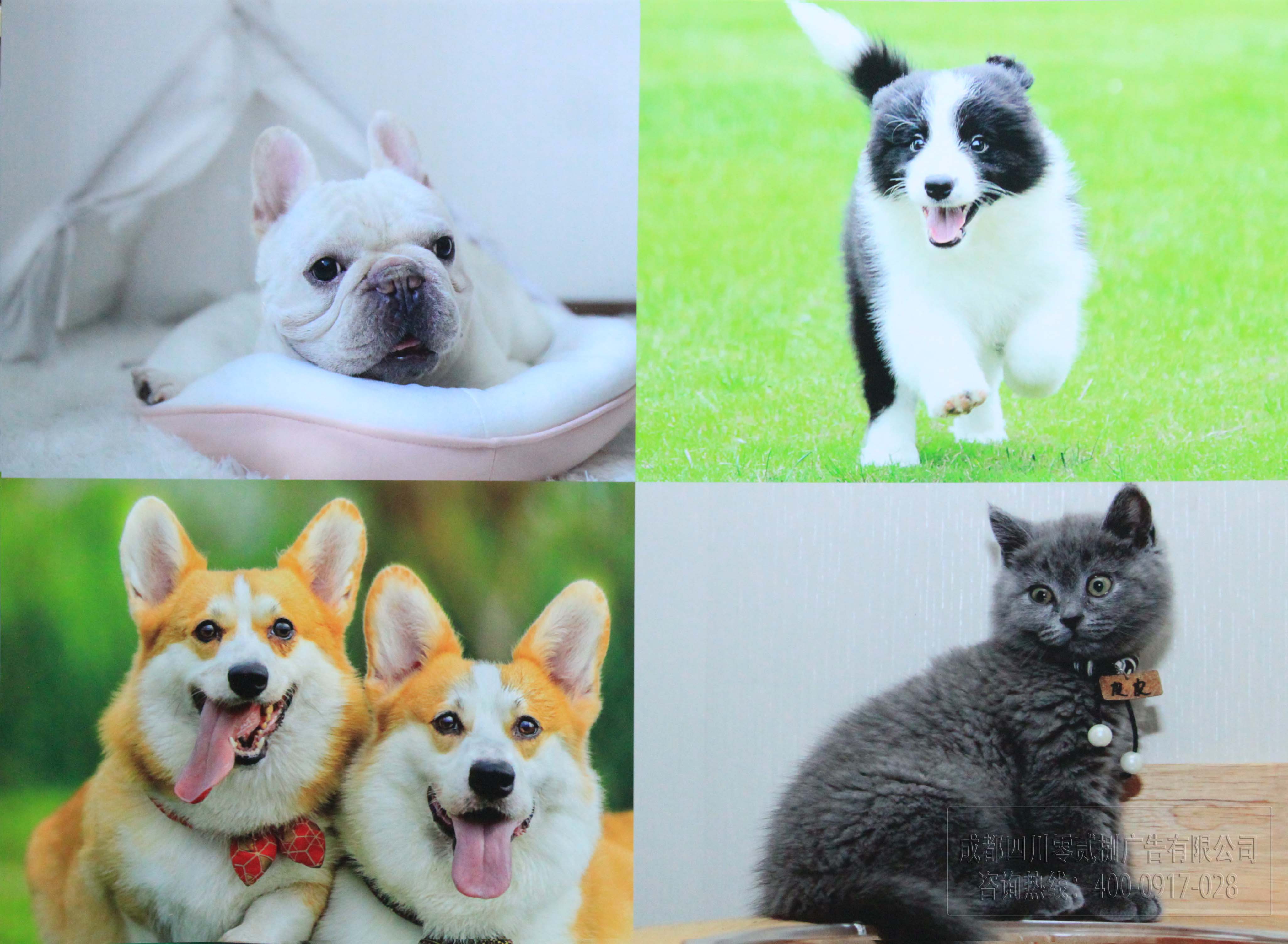 加上UV噴繪上色,圖案、照片噴繪還原度是很高的,照片采集自028廣告公司制作的寵物店KT板顏色鮮艷,圖案清晰;KT材質(zhì)輕盈,可見寵物照片還原度高,活靈活現(xiàn)。